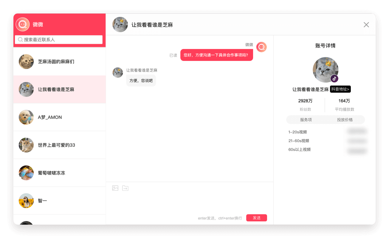 一键直联红人,可以在线沟通原创需求、投放排期、呈现方式等细节。