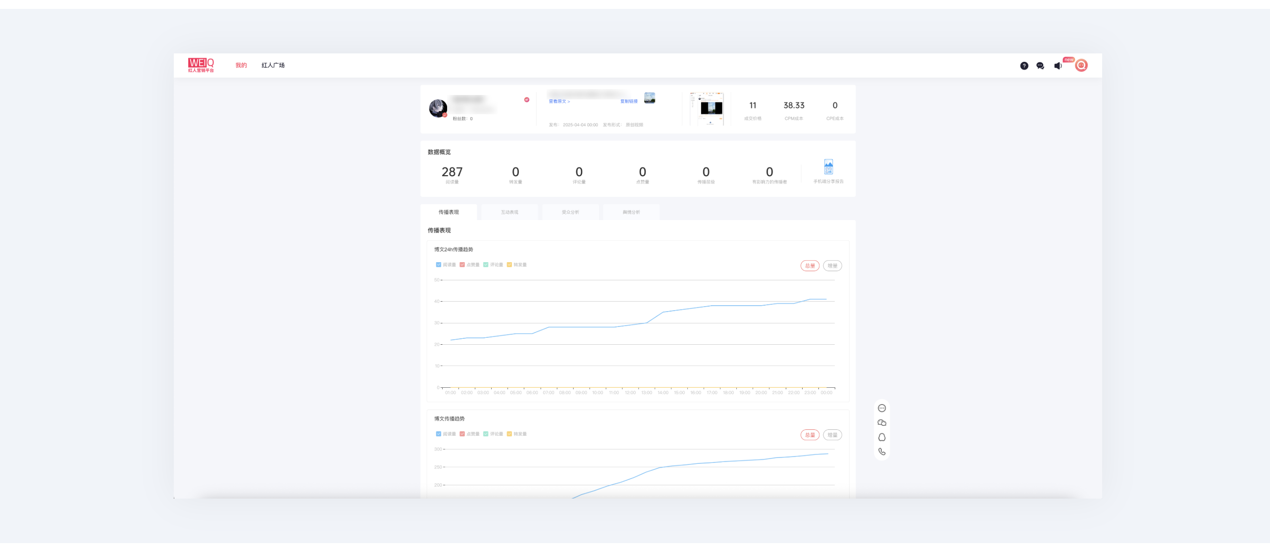 · 传播表现:主要评估该订单内容24h的有效播放、互动数据,评估达人该订单内容的传播表现。