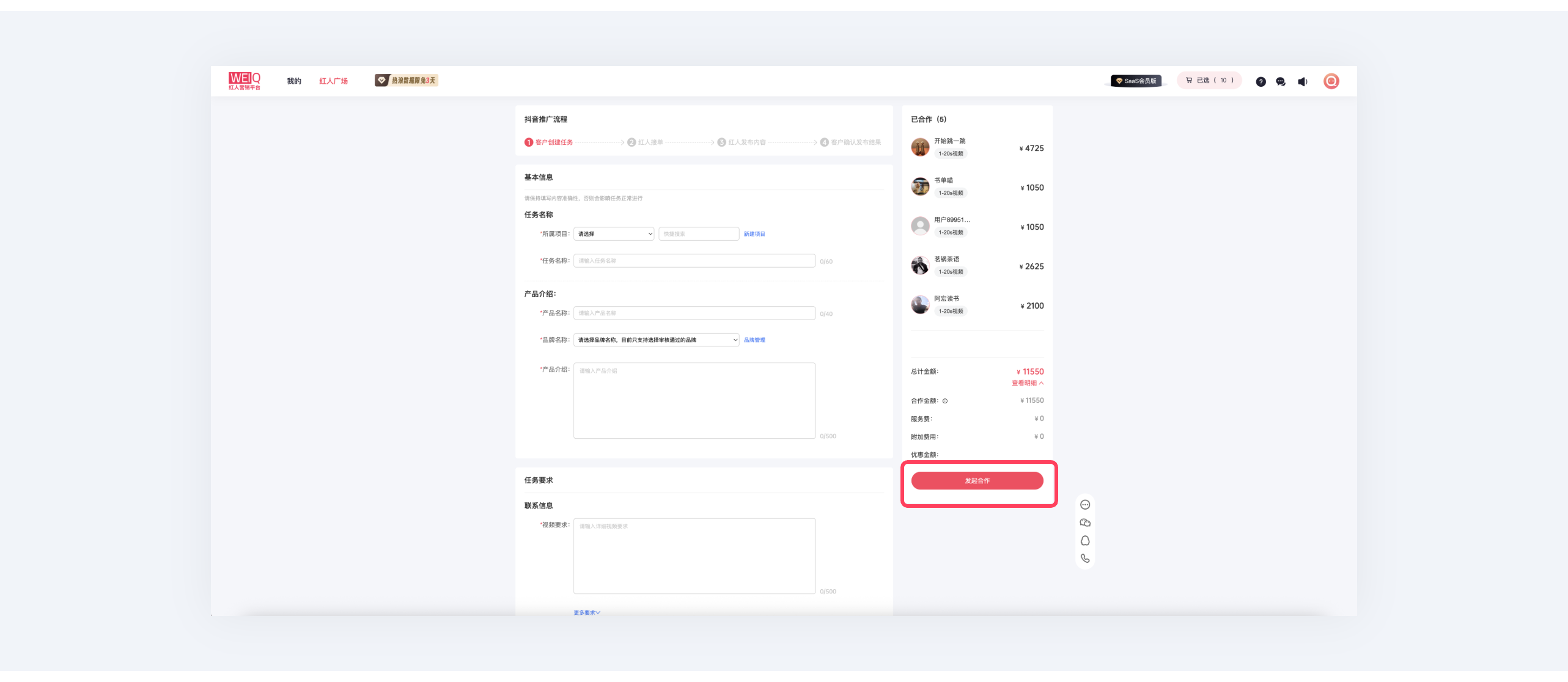 第三步:填写相应推广信息,确认无误后,点击【发起合作】。