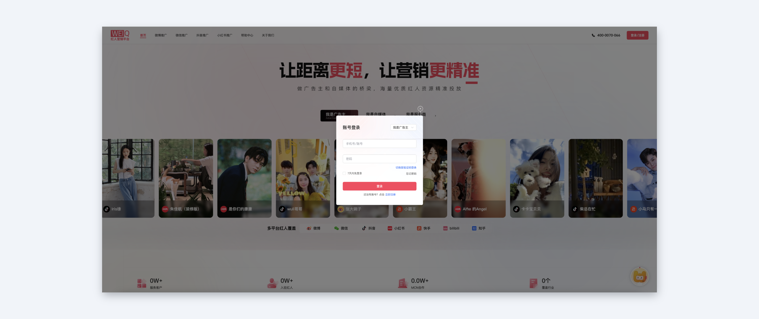 ①输入用户名及密码进入广告主平台;
