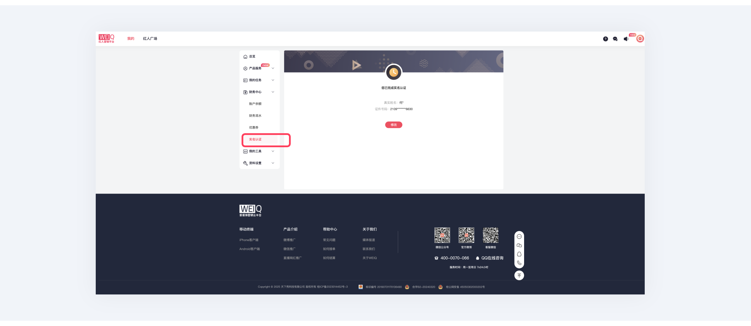 ⑦点击“财务中心”即可办理实名认证及余额充值服务: