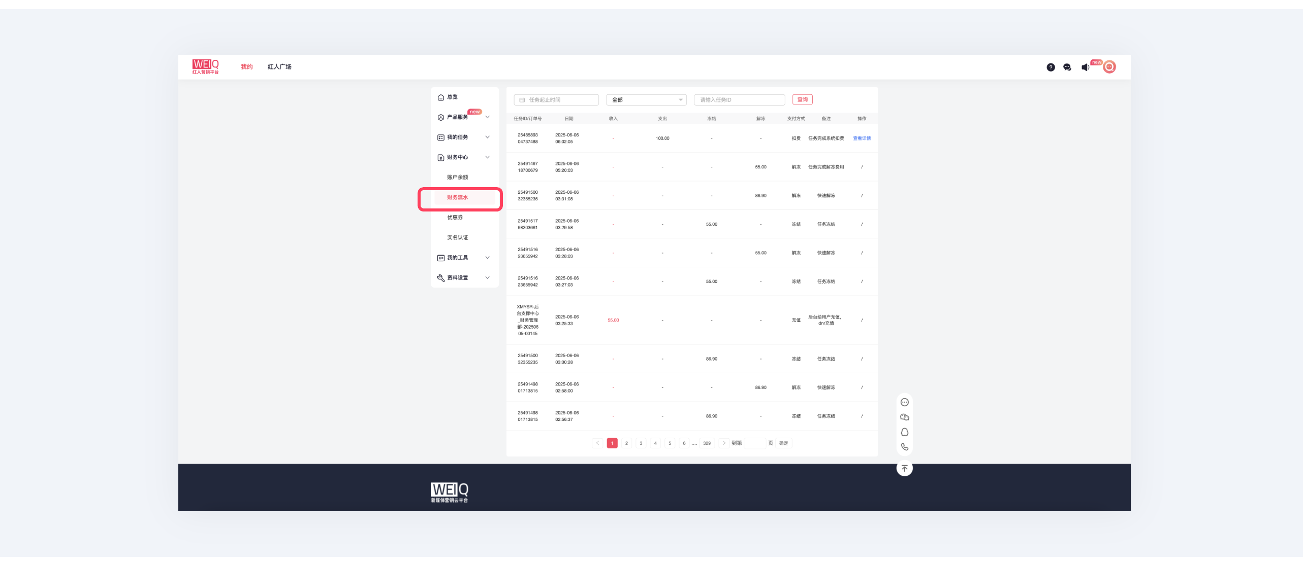 ⑧在“财务流水”部分,可以对账单的交易详情进行查看。