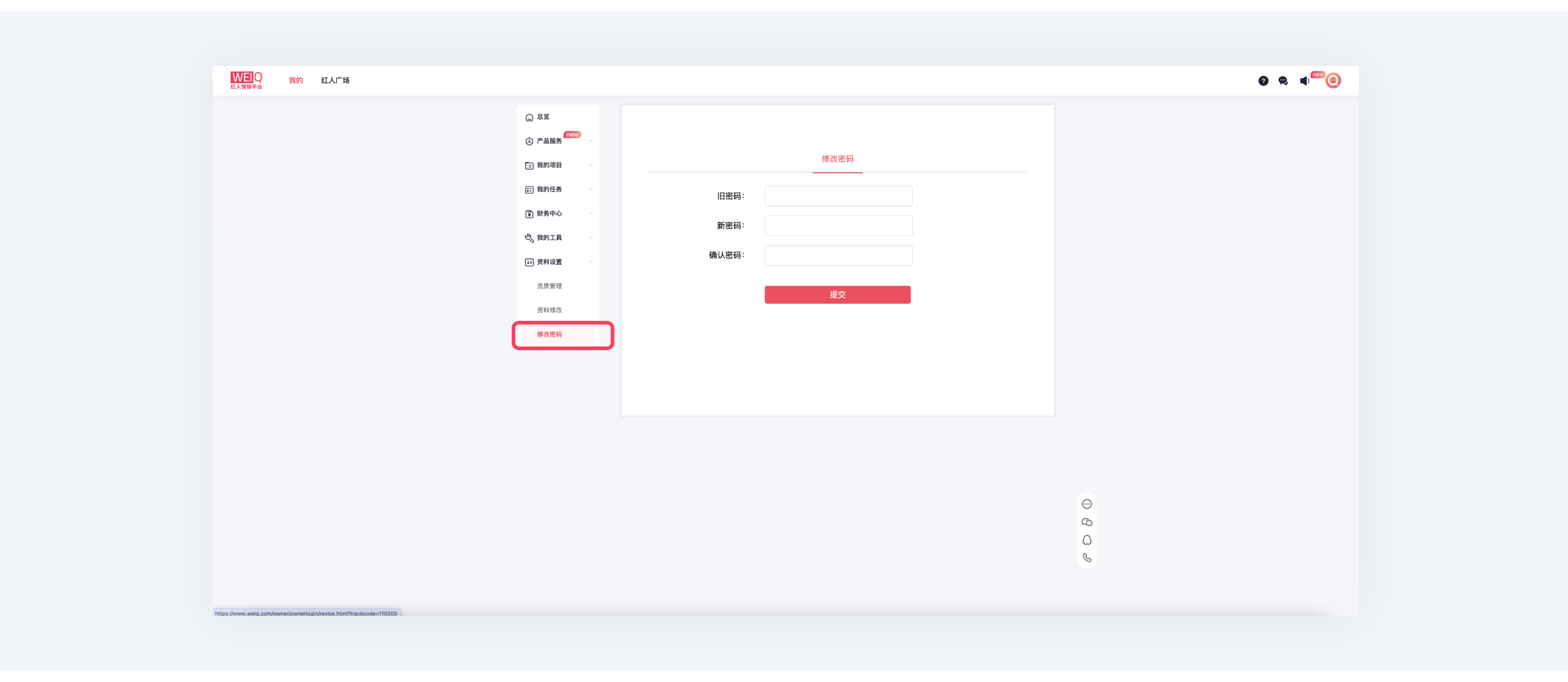 ⑨在“资料设置”中,可以对个人信息及密码进行修改。