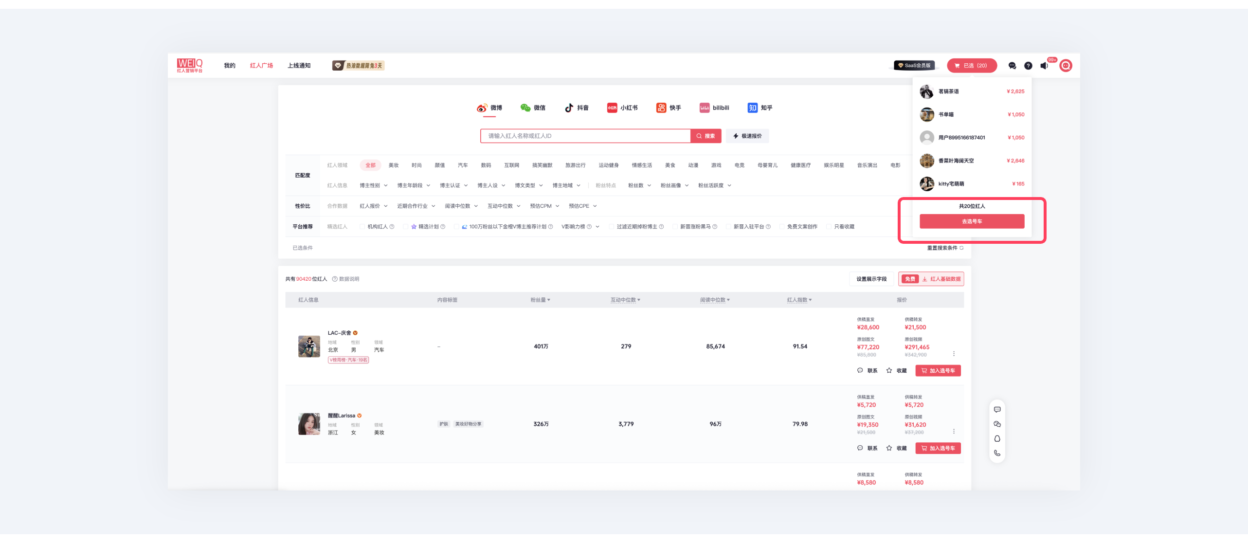 第二步:选择心仪账号加入选号车;点击【去选号车】,并选择心仪账号,点击右下方【立即预定】;